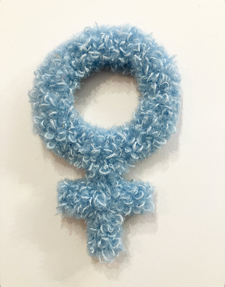 Vægophænget er tuftet af uld eller blandingsgarn såsom mohair, alpaka, polamid osv. med bagbeklædning af kork. Kvindetegnet har derfor forskellige strukturer alt efter, hvilken type garn, det er tuftet med.